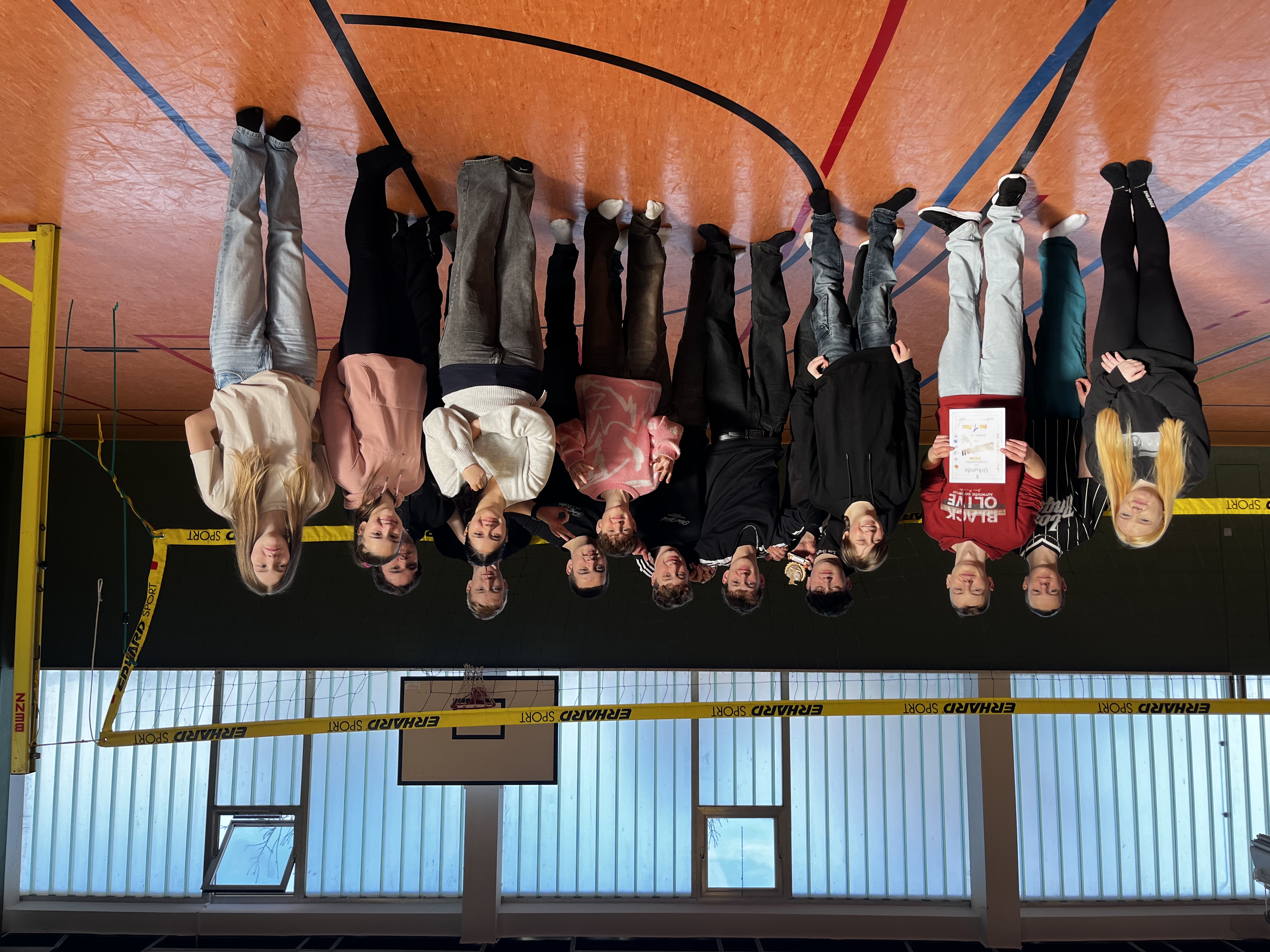 Wie zu Beginn eines jeden Jahres fand auch in diesem Januar das schulinterne Neujahrsturnier statt. Die Klassen 5 & 6 gaben ihr Bestes beim 2-Felder-Ball, bei dem sich die Klasse 5a am Ende durchsetzen konnte. Die Schüler und Schülerinnen der 7. und 8. Klassen kämpften gleich in drei Sportarten gegeneinander. In packenden Partien im Hockey, Basketball und Fußball zeigte die Klasse 8a die beste Gesamtleistung und konnte sich den Pokal sichern. Bei den 9. und 10. Klassen gestaltete sich die Organisation des Turniers auf Grund der sehr variierenden Klassengrößen nicht ganz einfach. Durch Losverfahren wurden stets neue Teams zusammengewürfelt, die sich dann in Volleyballmatches duellierten. Jeder Spieler und jede Spielerin konnte dabei Punkte für seine Klasse sammeln. Am Ende gewann hier die Klasse 9a den Pokal.